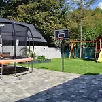 Este apartamento de 150 m^2 está a 125 km do aeroporto em Poprad-Tatry. Terraço convida os hóspedes a se relaxar. Mergulhe em piscina aquecida e embarque numa variedade de atividades, incluindo tênis de relva, badminton e pingue-pongue.